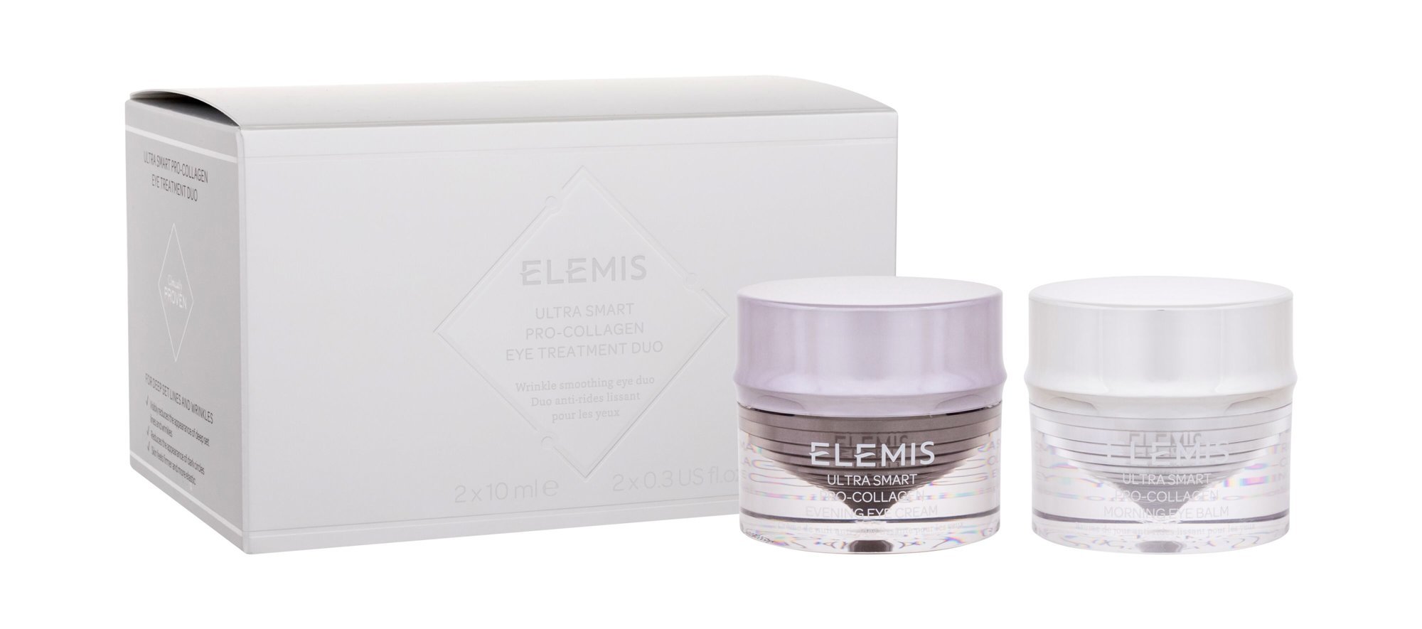 Vyhlaďte oční okolí a omlaďte svůj vzhled pomocí speciálního kolagenového setu Elemis Ultra Smart Pro-Collagen Eye Treatment Duo!Denní oční balzám Ultra Smart Pro-Collagen Morning Eye Balm 10 mlTento chladivý oční balzám s komplexem ULTRA SMART Triple Targeted Dermal Complex je zaměřený na...
