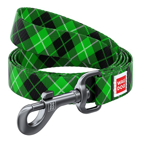 Vodítko nylonové Waudog Zelená kostka (122cm/2,0cm)
