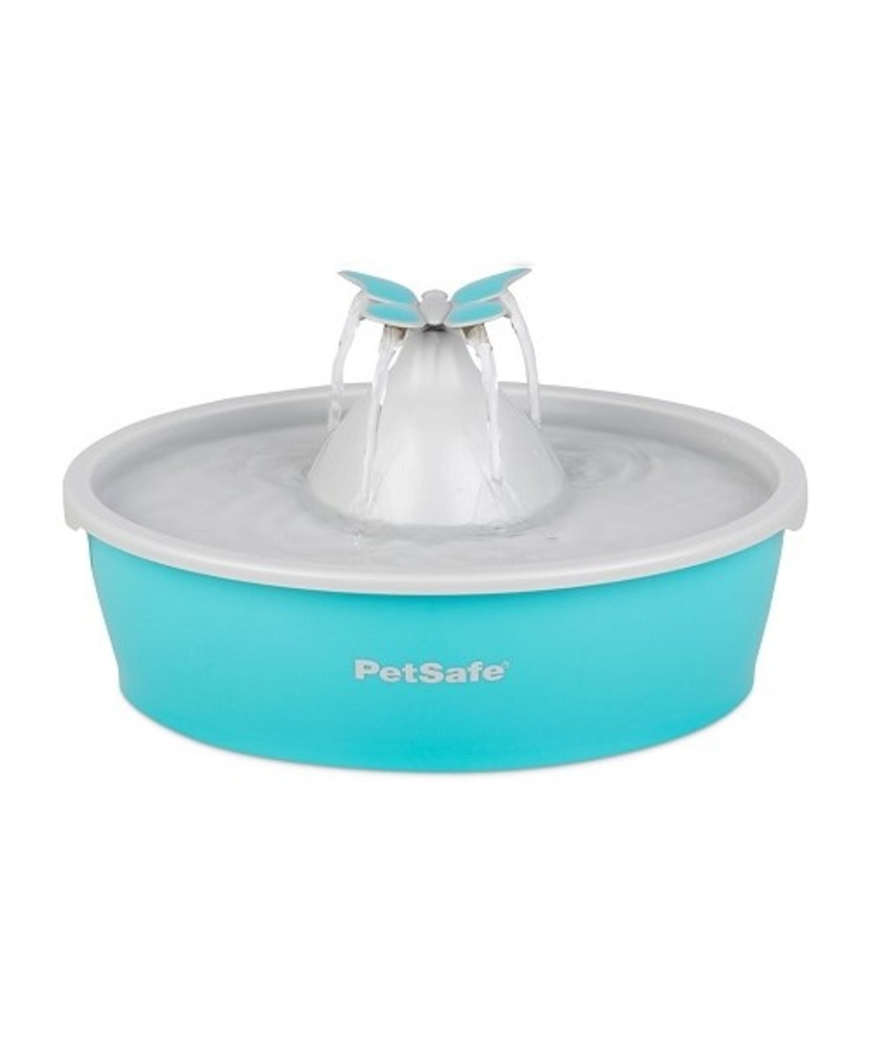 Stały strumień wody przyciąga psy i koty do fontanny i zachęca je do picia oraz utrzymania odpowiedniego poziomu nawodnienia. Wyjmowana górna część w kształcie motyla dodaje fontannie dekoracyjnego akcentu i tworzy 4 swobodnie spadające strumienie wody. Górną część można łatwo zdjąć, aby uzyskać cichy, bulgoczący strumień wody. Węgiel aktywny i filtr piankowy zatrzymują sierść i zanieczyszczenia, usuwają chlor, zapach oraz nieprzyjemny smak z wody - wszystko dla dobra Twojego najlepszego przyjaciela. Filtry należy wymieniać co 2-4 tygodnie; jeśli fontanny używa kilka zwierząt, wymieniaj filtry częściej.