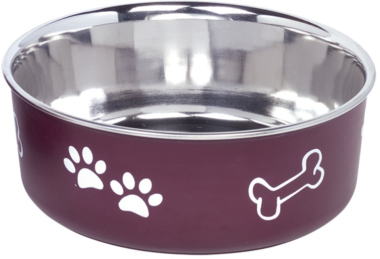 Kolorowa miska ze stali nierdzewnej trwale osadzona w plastikowej obudowie. Miskę można myć w zmywarce. Pojemność miski 940 ml, rozmiar miski ø 16 cm. Kolor: czerwony. Spód wyposażony w powłokę antypoślizgową, która zapobiega przesuwaniu się miski po podłodze. Miska wykonana jest ze stali nierdzewnej i plastiku. Zaletą tej miski w porównaniu z zwykłymi plastikowymi miskami jest to, że miska jest całkowicie pozbawiona smaku i zapachu i z czasem nie przejmuje zapachu karmy jak miski plastikowe. Jaką miskę wybrać dla psa? Mały pies do 10 kg potrzebuje miski o pojemności od 0,3 do 0,5 l. Średni pies około 0,6 do 1 l, a duży pies miskę od 1 l wzwyż. Dla olbrzymich ras wybieramy miski powyżej 2 l.