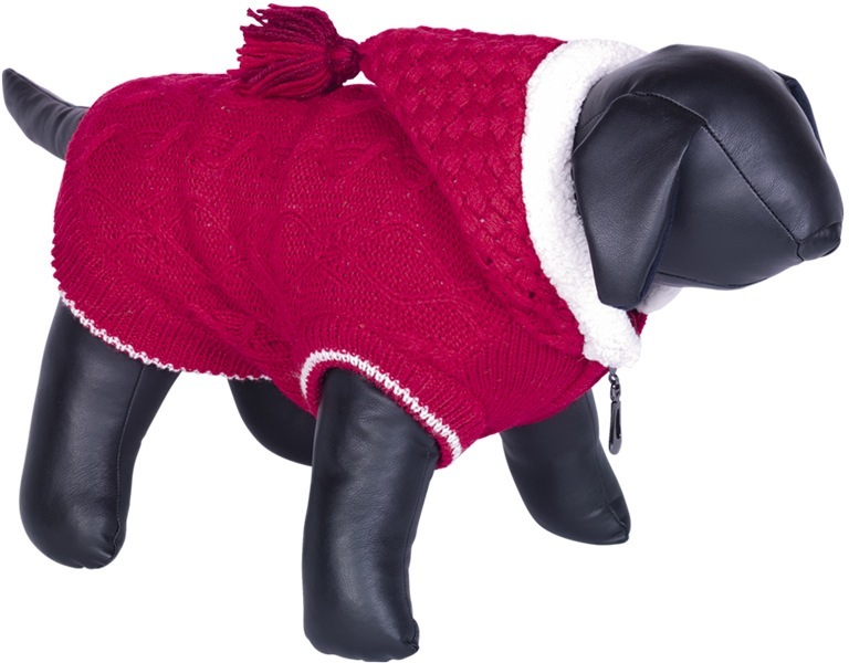 Pletený teplý svetr pro psy značky Nobby. Barva červená, s teplou podšívkou a kapucí. Zapínání na zip. Kapuci není možné odepnout. Materiál: mikrovlánko (100% akryl). Akryl je pružný a měkký, s nižším sklonem k žmolkování. Velikost: 20 cm (délka zad) Obvod krku: 21 - 25 cm Obvod hrudníku: 26 - 33 cm Údržba: 30 °C ruční praní, nebělit