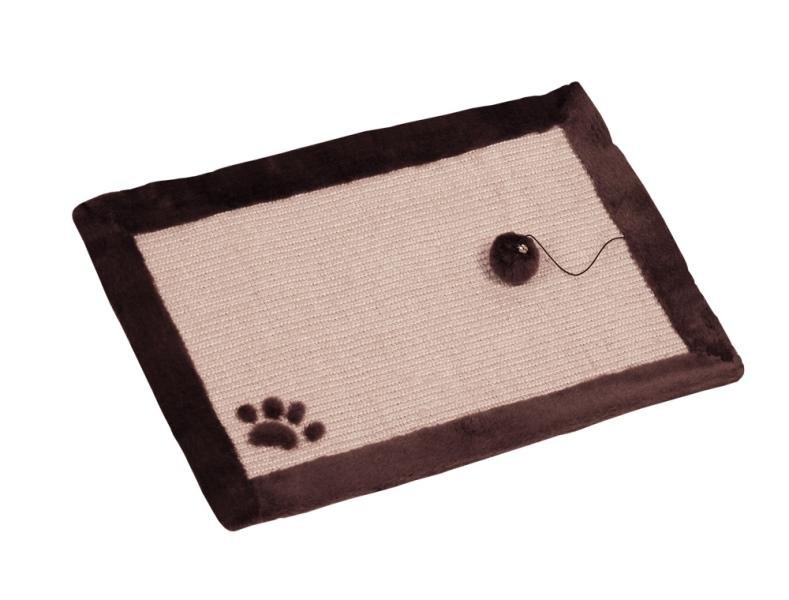 - škrabací podložka lemovaná plyšem - vyrobeno ze sisalu - plyšová bambulka s rolničkou na gumičce - umožňuje kočce provozovat své škrabací zvyky - může být položeno na zemi, nebo upevněno na stěně - škrabadlo co nezabírá místo - velikost 58x37cm Broušení drápků je pro kočky velmi důležité. Aby se předešlo tomu, že by kočka poškrábala koberec nebo nábytek, je nezbytné jí poskytnout nějaký jiný vhodný objekt a materiál ke škrábání. Sisal je přírodní, velmi masivní vlákno, které kočkám pomáhá zbavit se šupinovité svrchní vrstvy na jejich drápcích a tím je zabráněno zarůstání drápků. Podložka může být připevněna na zeď nebo položena na podlahu. K podložce je připevněna hračka na pružině.