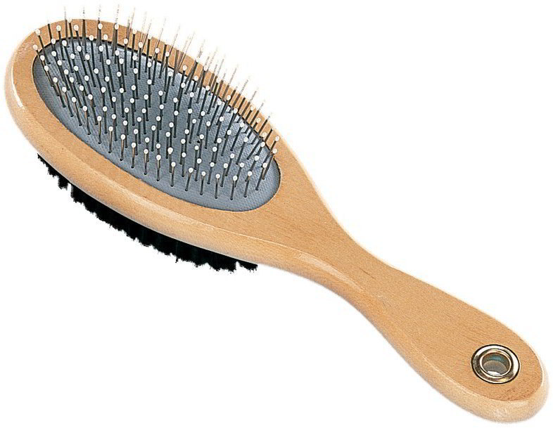 Oboustranný přírodní kartáč pro rozčesávání srsti. Jemná strana s umělým vláknem je vhodná pro závěrečné pročesání. Rukojeť pohodlně zapadne do ruky.    Použití: Kartáč je vhodný pro krátkou až středně dlouhou srst velkých plemen, umělá vlákna oceníte u psů s jemnou srstí. przeczytaj całość