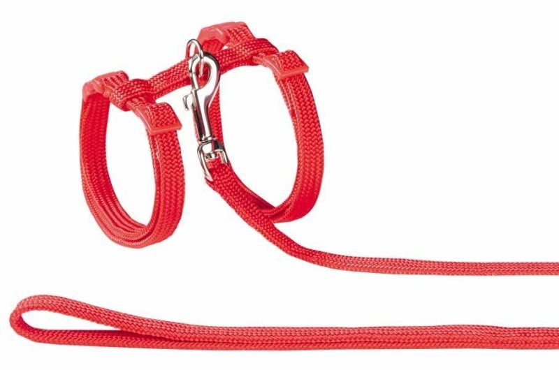 Nylonový set postroje a vodítka pro kočku. Univerzální nastavitelná velikost postroje 37-47cm. Délka vodítka 120cm. Šíře 10mm. Barva červená. przeczytaj całość