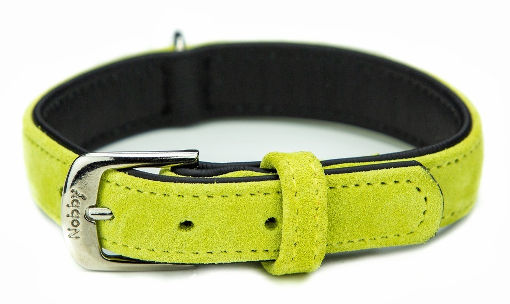 Jedinečný barevný obojek Nobby z jemné italské hovězí kůže. Obojek je pevně ušitý ze semišové kůže na vrchní straně a z jemné nappa kůže na spodní straně. Vyrobeno z italské kůže (certifikované EU). Velikost: celková délka obojku 32 cm vhodné pro obvod krku psa 25 - 30 cm šíře obojku 14/16 mm Barva: zelená Obojek doporučujeme kombinovat s vodítkem ze stejné kolekce "Nobby VELOURS"
