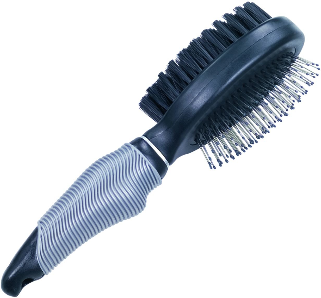 Profesionální oboustranný kartáč, pro rozčesání srsti, finální úpravu a podporu lesku srsti. Drátěná hlavice s ochrannými čepičkami pronikne až do podsady. przeczytaj całość