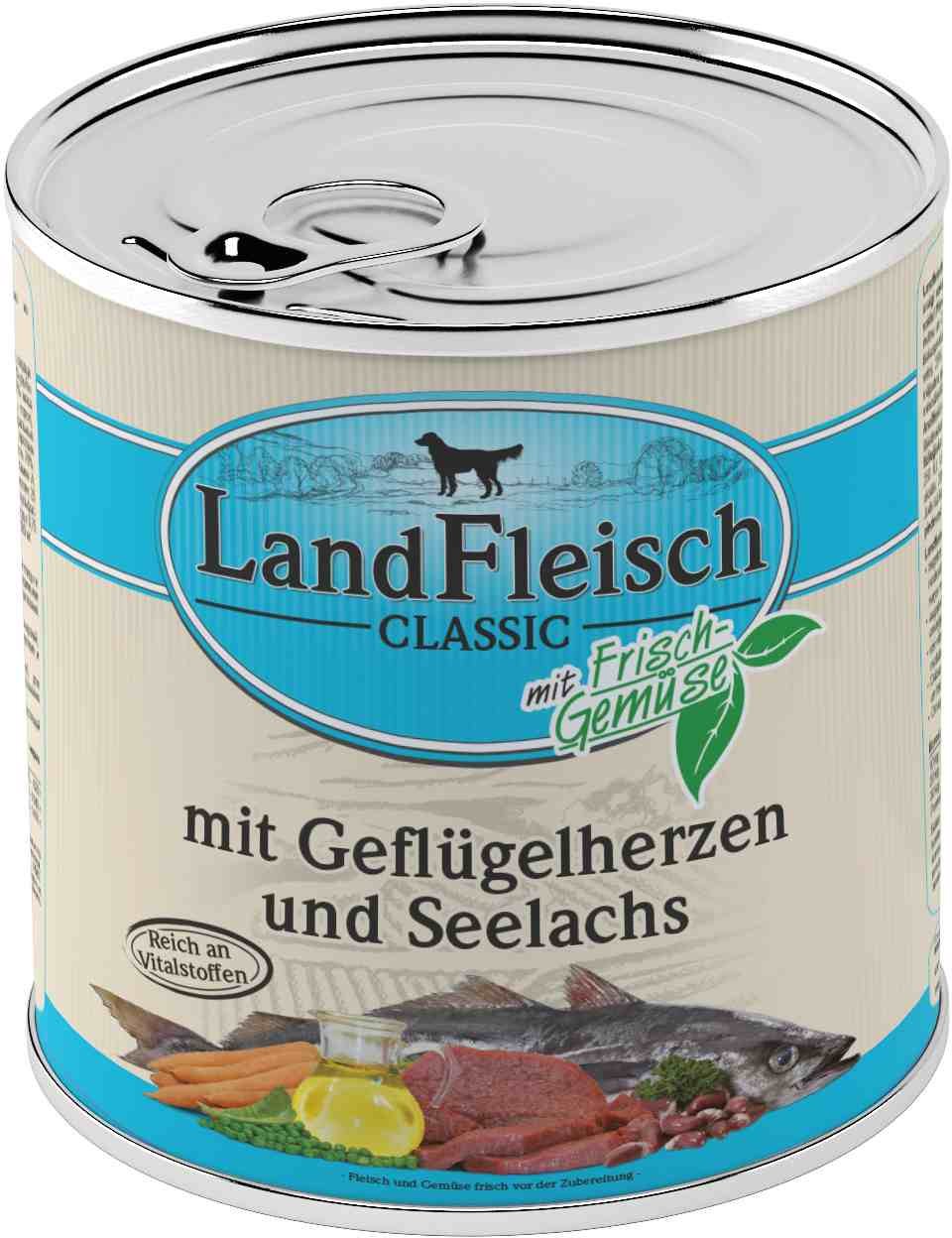 Konzerva Landfleisch s drůbežími srdíčky, treskou tmavou a zeleninou. Kompletní krmivo pro dospělé psy všech plemen. Landfleisch konzervy jsou exkluzivně vyráběny z čerstvého masa a čerstvé zeleniny. Všechny suroviny pocházejí z přírody z německých farem. Obsahuje pouze čerstvé maso z jatečných...