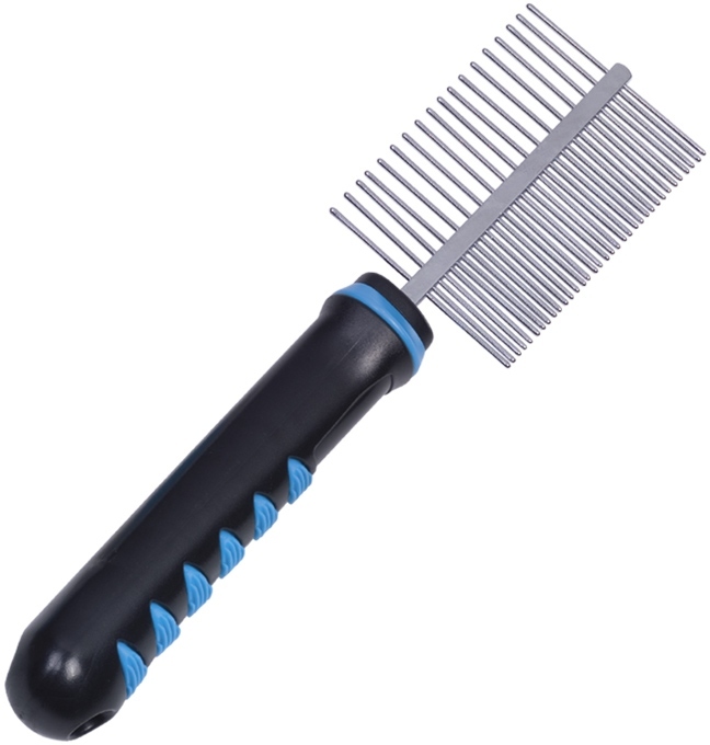 Oboustranný hřeben Nobby z kolekce Comfort Line je vhodný zejména na péči o středně dlouhou a dlouhou srst. Některé části těla psa jsou obzvláště náchylné k slepencem na srsti. Jemné a hrubé zuby zajišťují, že srst je čištěná, vyhlazená a zároveň podporuje krevní oběh. Plastová rukojeť je v ruce bezpečná a pohodlná a zajišťuje pohodlné česání. - 18 + 35 zubů - pro středně dlouhou a dlouhou srst