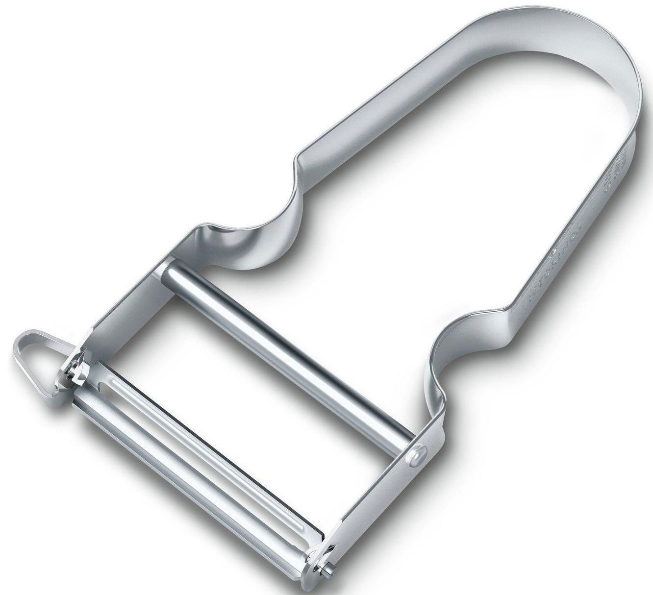 Poprzeczne, wahadłowe ostrze z prostą krawędzią. Boczne, zintegrowane oczko do usuwania zepsutych miejsc w warzywach. Obieraczka nie nadaje się do zmywarki.
