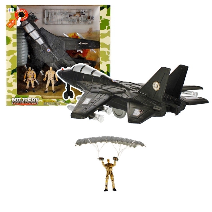 Letadlo má světelné a zvukové efekty, po stisku tlačítka uslyšíte dunění motoru startujícího letadla, střelbu raket. Vojenské letadlo je něco pro milovníky nebe. Bezpochyby tato hračka poskytne vašemu dítěti spoustu skvělé zábavy! Obsah soupravy: Vojenské letadlo, 2 x figurka vojáka, 1 x padák, 2...