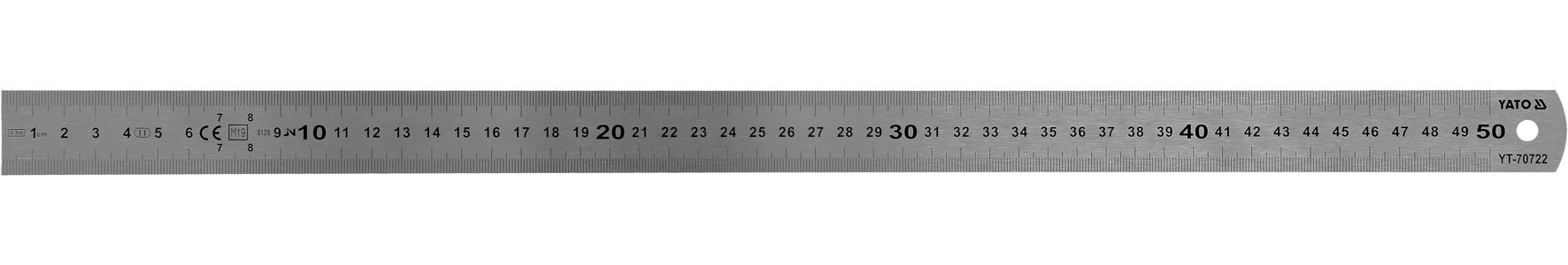Dzięki szerokości 30 mm i długości 538 mm, z czego 500 mm jest użytkowe do pomiarów, linijka jest wygodna w trzymaniu, a jednocześnie wystarczająco długa do większości zastosowań. Grubość 1,1 mm zapewnia elastyczność przy zachowaniu wytrzymałości konstrukcji.