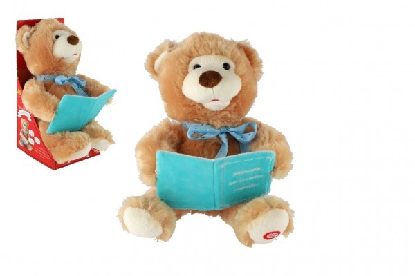 Medvěd vyprávějící pohádky slovensky mluvící plyš 28cm na baterie v krabici 14x31x18cm 18m+
