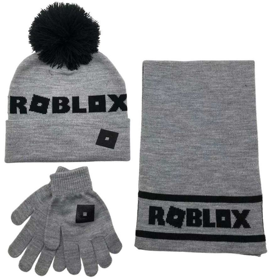 Dětská zimní čepice, rukavice a šála Roblox: Logo (univerzální) šedý akryl