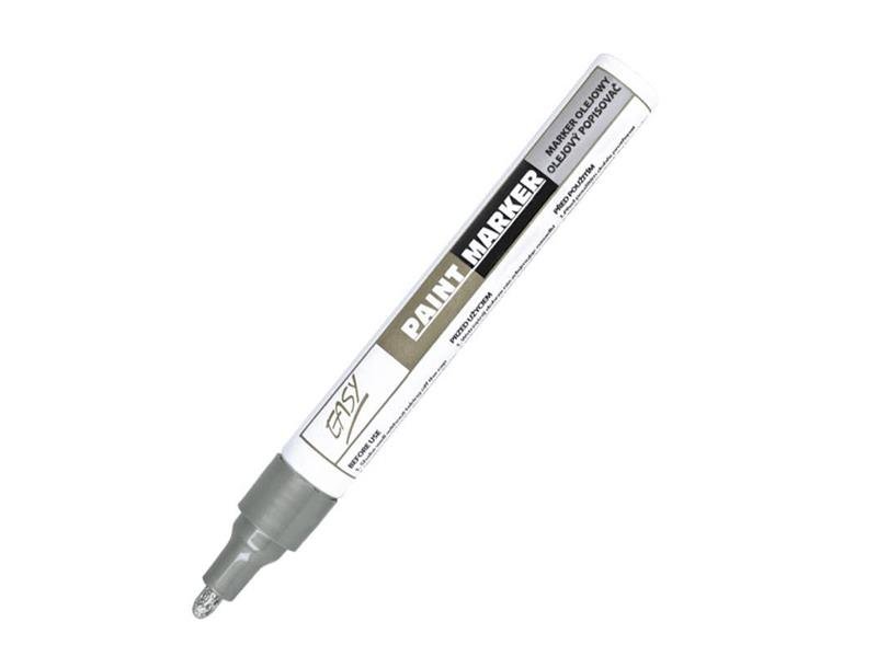 Olejowe markery przeznaczone do długotrwałego oznakowania na prawie każdej powierzchni, chropowatej lub gładkiej, takiej jak: metal, szkło, drewno, beton, kamień, plastik, polistyren. Dobrze kryjący tusz pigmentowy, nieprzezroczysty, szybko schnący, odporny na ścieranie i działanie temperatur. Aluminiowa obudowa nie zawiera szkodliwego ksylen, okrągła końcówka. Kolor: Srebrny