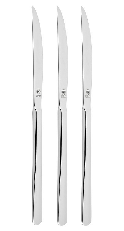 Sada tří kusů příborových nožů CS Solingen EDLON zaujme kvalitním zpracováním z nerezové oceli ve vysoké kvalitě 18/10. Tyto nože jsou opatřeny ostřím s jemnou pilkou, díky níž skvěle poslouží jako univerzální příborové nože. Povrch nožů je lesklý a bez zdobení, s malým tradičním logem značky CS...