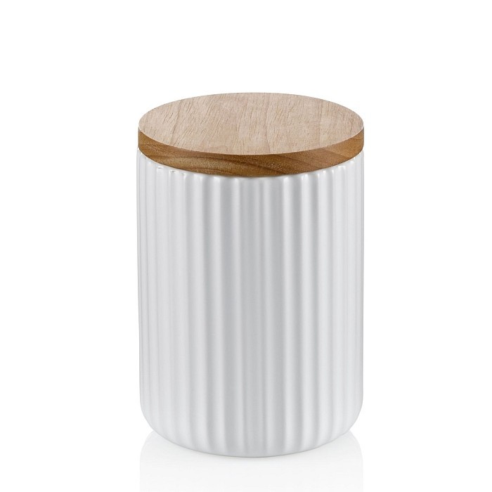 keramická dóza v matné bílé barvělíbivý žebrovaný design lahodí nejen oku, ale zároveň má svoji funkční podstatu, toto provedení je pevnější, odolnější vůči nárazům nebo poškrábánídřevěné víčko se silikonovým těsněnímjednoduché čištění, lze umývat v myčce nádobírozměry: 10 x 14 cmobjem 0,75... przeczytaj całość