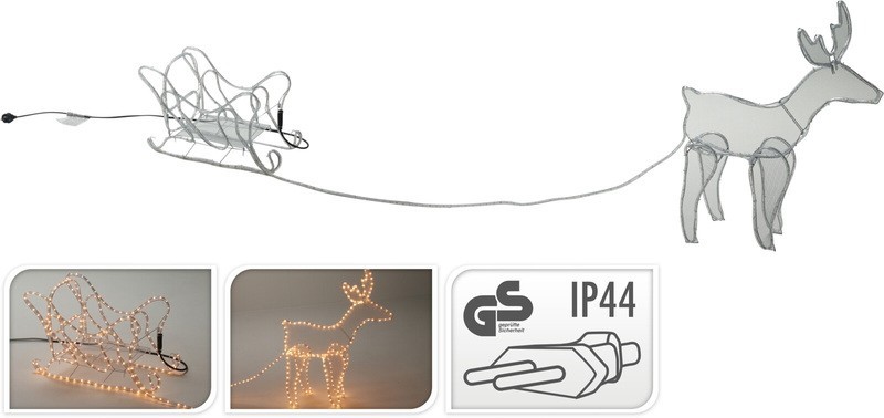 Svítící sob se sáňkami navodí úžasnou Vánoční atmosféru kdekoli ho umístíte. Sob může svítit v blízkosti vánočního stromečku, na zahradě, terase, před domem či na balkoně. Díky venkovnímu krytí je možné soba postavit téměř kamkoliv a to i ven. Svítící sob i saně jsou potaženy světelným kabelem s...