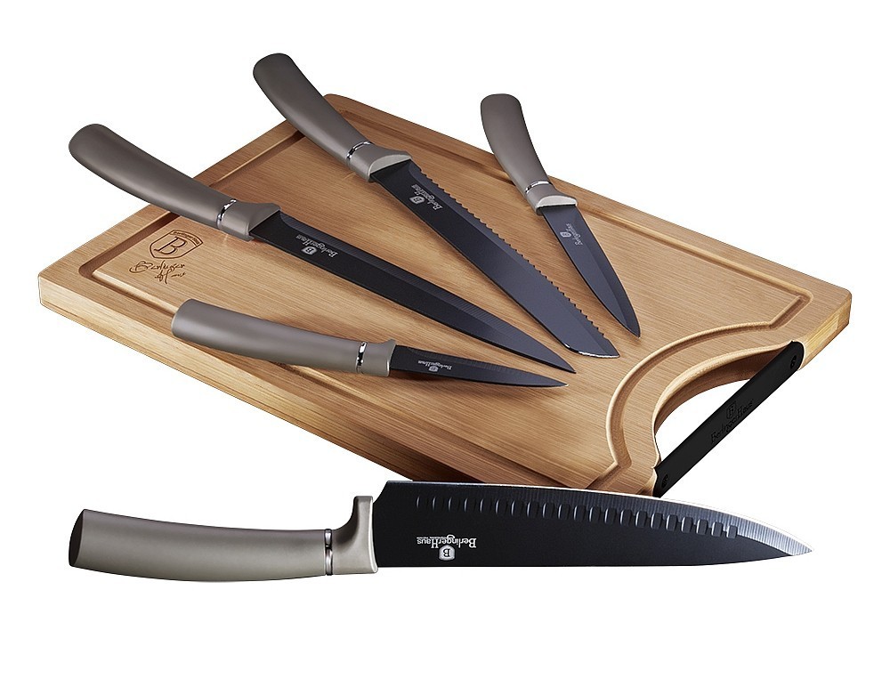 Sada nožů s nepřilnavým povrchem + prkénko 6 ks Carbon Line