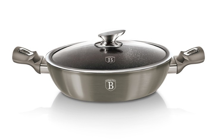 materiál: kovaný hliník s mramorovým povrchembarva: šedá carbon, metalickáprůměr: 28 cm3 vrstvý nepřilnavý povrch s mramorovým designemergonomické měkčené rukojetiTURBO indukční dnavhodné na všechny druhy ohřevu, včetně indukcevhodné do myček - jednoduché čištění!úspora energie až 35%termo sklo...