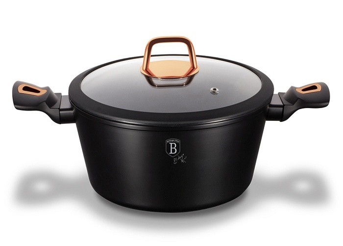 materiál: kovaný hliník s mramorovým povrchemprůměr: 20 cmvýška: 10,5 cmobjem: 2,5 lbarva: černá/rosegoldžáruvzdorná poklice se silikonovým okrajem3vrstvý nepřilnavý povrch s mramorovým designemergonomické měkčené rukojetiTURBO indukční dnovhodné na všechny druhy ohřevu i na indukcivhodné do...