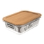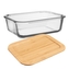 Szklany pojemnik z pokrywką - do przechowywania, podgrzewania (bez pokrywki) i zapiekania (bez pokrywki) żywności. Pokrywka jest wyposażona w silikonową uszczelkę, można jej także używać jako podkładki lub deski. Dzięki wgłębieniu w pokrywce pojemniki można sztaplować. Borokrzemowe szkło pojemnika jest odporne na wysokie temperatury, można w nim podgrzewać żywność i zapiekać w tradycyjnym piekarniku, nie przejmuje koloru, smaku ani aromatu przechowywanych produktów i nawet przy długotrwałym przechowywaniu nie wpływa na jakość żywności. W pojemnikach można także przechowywać przygotowane potrawy w lodówce. Materiał: szkło borokrzemowe (zakres temperatur od -20 °C do 220 °C), drewno bambusowe, silikon. Wymiary: pojemność 1,6 l, 22x16,5x7 cm. Można myć w zmywarce (bez pokrywki) oraz używać w tradycyjnym piekarniku i w kuchence mikrofalowej (bez pokrywki).