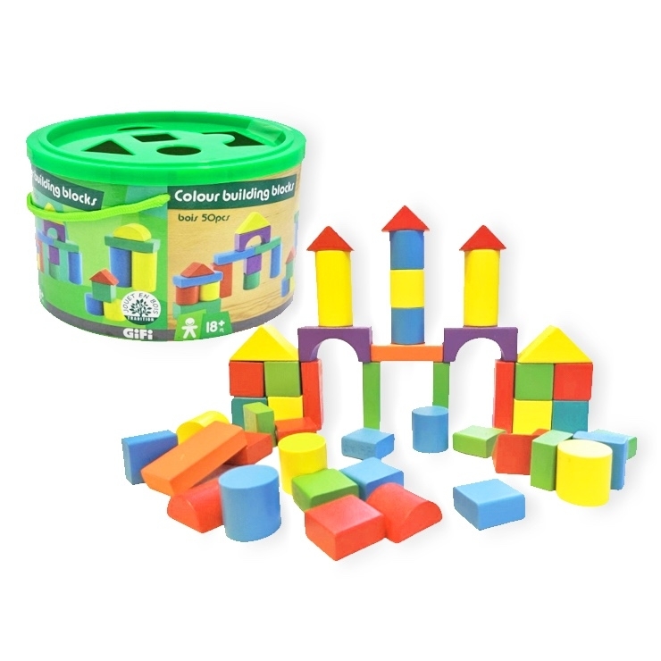Kdo postaví nejvyšší věž? Barevné dřevěné kostky 50ks v krabici.Také i jako edukační hračka, kde na víku jsou rozmístěny otvory v geometrických tvarech umožňující vkládat kostky.Nevhodné pro děti do 3 let. przeczytaj całość