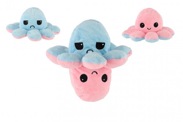 Chobotnice oboustranná plyšová měnící obličej 18cm růžovo-modrá v sáčku