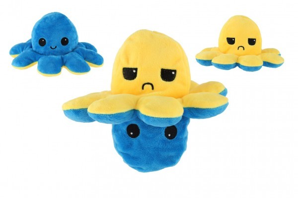 Chobotnice oboustranná plyšová měnící obličej 18cm žluto-modrá v sáčku