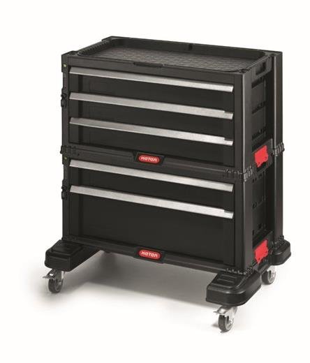 Dílenský vozík Keter s 5 zásuvkami nabízí úložný prostor pro velké množství nářadí, jako jsou šroubováky, kleště, vrtačky nebo aku nářadí a další nástroje a příslušenství. Je vyrobený z pevného a odolného plastu.Úložný box na nářadí obsahuje jednu hlubokou zásuvku s odnímatelnými přihrádkami, do...
