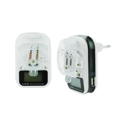 Cestovní nabíječka Baterií universál M-LIFE s LCD + USB výstup, barva bílá