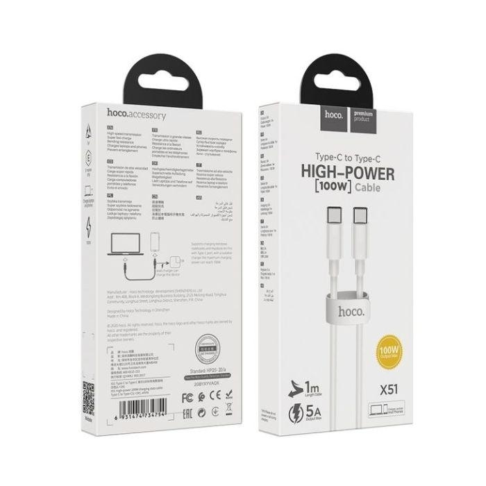 Datový kabel HOCO X51 USB Typ C - USB Typ C, 100W/5A Output, 1M barva bílá