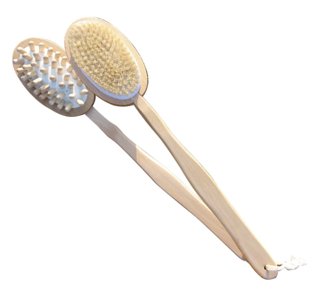Wygodne używanie szczotki do mycia i masażu pleców, dzięki długiemu uchwytowi może masować trudno dostępne partie pleców. Szczotka skutecznie masuje skórę, poprawia jej kondycję, pobudza krążenie i nadaje skórze elastyczność. Szczotka jest obustronna, jedna strona masująca i druga klasyczna szczotka. Całkowita długość 42 cm, szerokość główki 7,5 cm. EAN 5903355007661