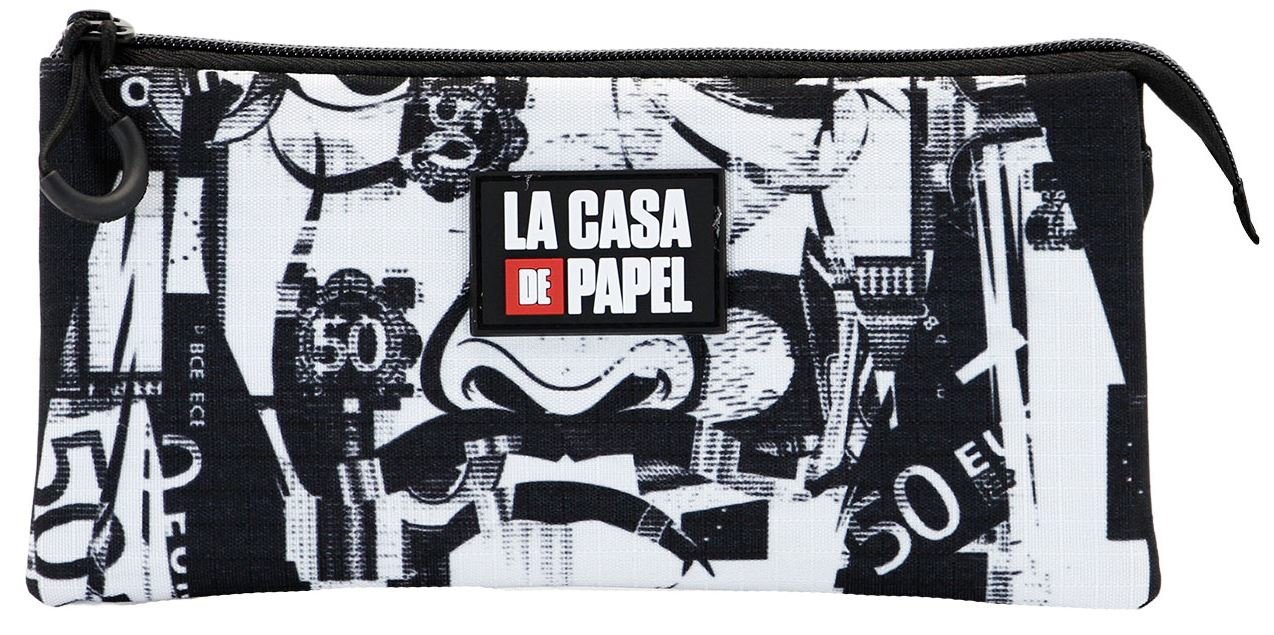 Oficiální penál z katalogu produktů s licencí španělského seriálu La Casa De Papel (Papírový dům) společnosti Netflix.