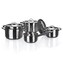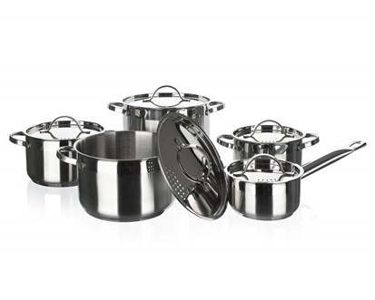 Nerezová sada hrnců BANQUET - vynikající poměr cena/kvalita, široká možnost použití, moderní design. Hrnce jsou opatřeny stupnicí a praktické děrované poklice pro slévání tekutiny. Vyrobeno z nerez oceli 18/0. Tloušťka stěny 0,5 mm, tloušťka dna 2 mm.