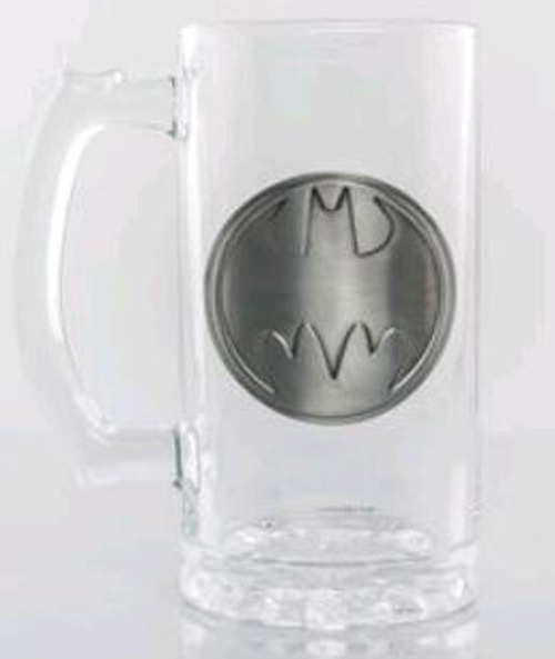 Skleněný korbel s logem komiksového hrdiny Batman.