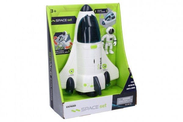 Raketoplán s astronautem plast 25cm na baterie se světlem, zvukem v krabici 22x28x10cm