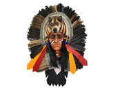 Závěsná dekorace Indiánský náčelník s vlkem 45 cm - var. D