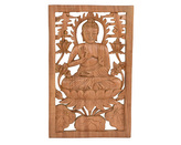 Závěsná dřevěná dekorace Buddha na lotosu - Vitarka mudra - jednobarevná - 25 x 40 cm