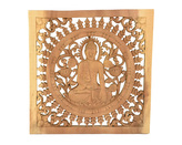 Závěsná dřevěná dekorace Buddha - Bhumisparsa mudra - dvoubarevná - 40 x 40 cm