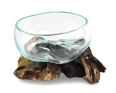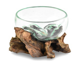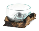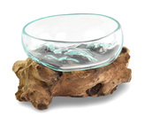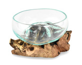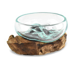 Skleněná mísa na dřevě malá 12 cm - var. L
