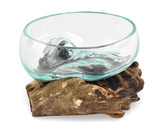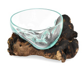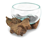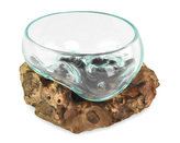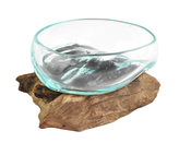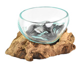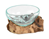 Skleněná mísa na dřevě malá 12 cm - var. B