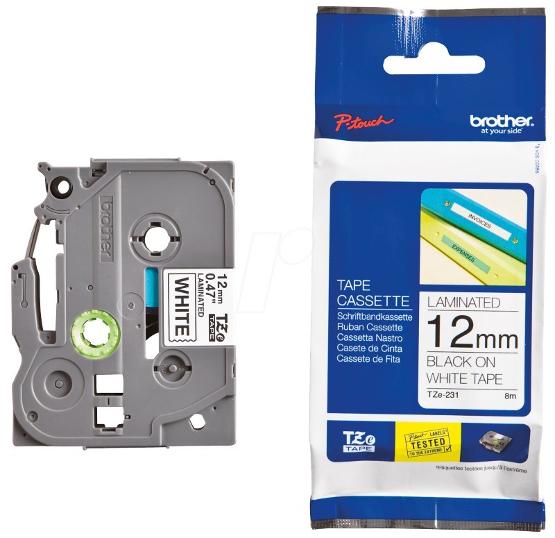 BROTHER laminovaná páska TZE-231/ bílá-černá/ 12mm
