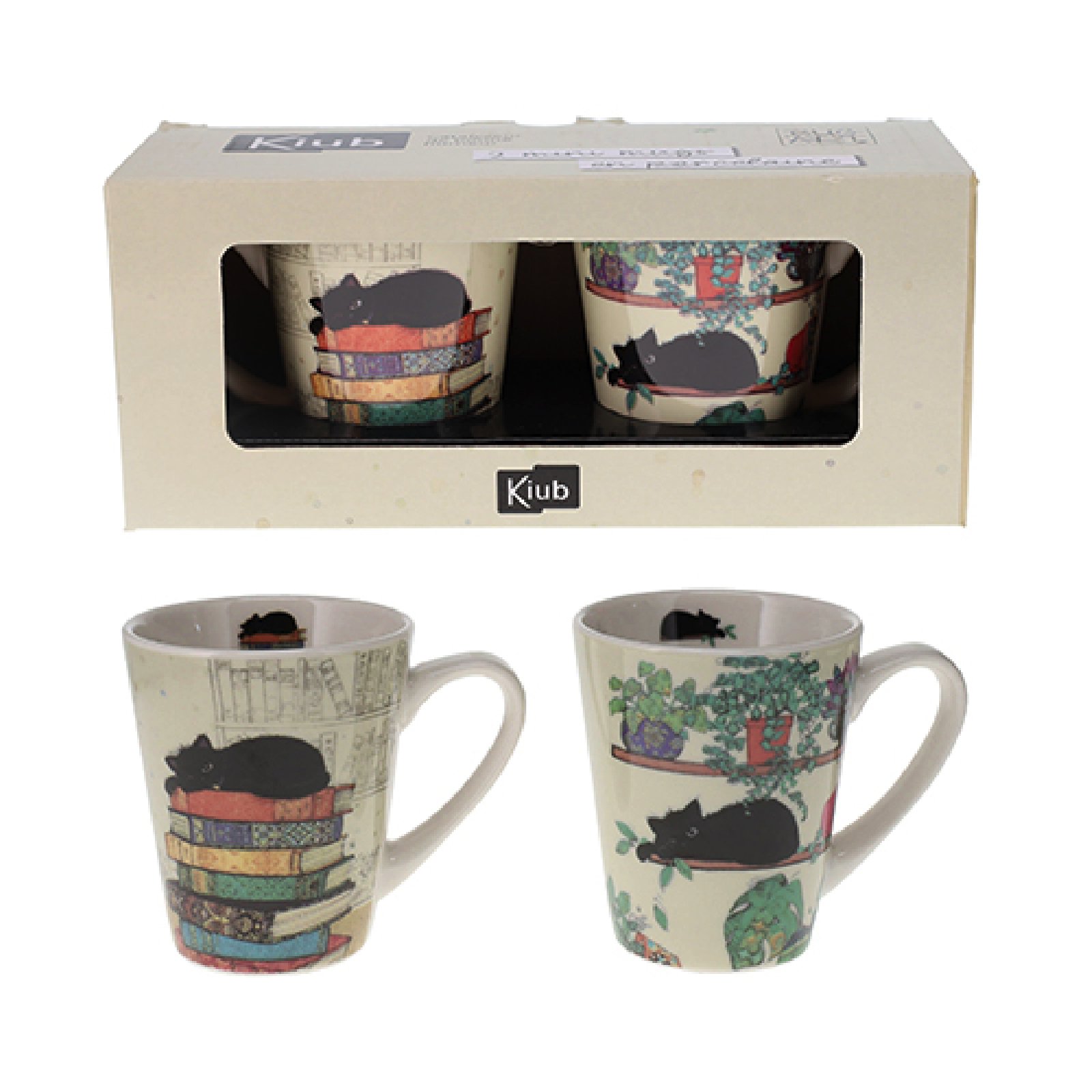 Hrnek BUG ART KIUB na espresso 2 ks - Kočka na knihách