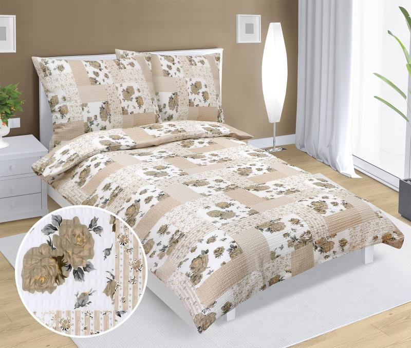 Povlečení bavlněné - béžový patchwork - 140x200, 70x90 cm