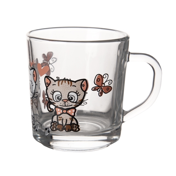 Hrnek s uchem. Materiál: sklo. Dekor KOCOUŘI. Rozměry: objem 0,29 l, pr. 8 cm, v. 8,5 cm. Lze mýt v myčce a použít v MVT. Vhodné pro děti od 3 let. przeczytaj całość