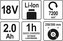 - Náhradní baterie 2 Ah (YT-82842), 3 Ah (YT-82843) a 4 Ah (YT-82844)