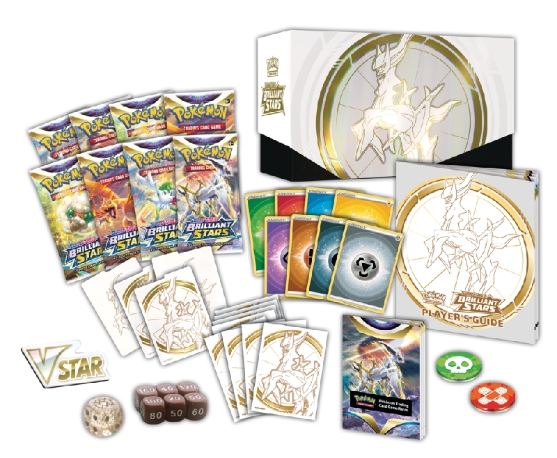 Specjalne opakowanie upominkowe zawierające 8 boosterów z serii Sword & Shield - Brilliant Stars oraz wiele innych niezbędnych akcesoriów potrzebnych do gry. Najciekawsze opakowanie tej edycji dla początkujących i zaawansowanych graczy. Zestaw zawiera: •8x booster Sword & Shield - Brilliant Stars •45x karta energii •65x koszulki na karty z ilustracją Pokémona Arceusa •2x akrylowy żeton na specjalne kondycje •6x kostka do oznaczania obrażeń •1x kostka do rzucania •4x divider - plastikowa karticzka służąca do rozdzielenia poszczególnych sekcji kart •1x akrylowy odznak VSTAR •1x przewodnik po grze •1x kolekcjonerskie pudełko, w którym wszystko jest przechowywane •1x karta z kodem do Pokémon TCG Online. Edycja Sword & Shield - Brilliant Stars ukazała się 25.02.2022 i zawiera ponad 170 kart, w tym 20 nowych Pokémonów V, 3 Pokémony VMAX i 4 Pokémony z nową mechaniką VSTAR, która dotychczas nie występowała w grze. Z Pokémonów V znajdziesz tutaj: Charizard V, Shaymin V, Zarude V, Entei V, Simisear V, Kingler V, Lumineon V, Raichu V, Raikou V, Granbull V, Whimsicott V, Mimikyu V, Honchkrow V, Morpeko V, Aggron V, Zamazenta V, Flygon V, Drampa V, Dracovish V oraz Arceus V. Z Pokémonów VMAX: Kingler VMAX, Mimikyu VMAX i Aggron VMAX. Z Pokémonów VSTAR: Charizard VSTAR, Shaymin VSTAR, Whimsicott VSTAR oraz Arceus VSTAR.
