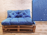 Polstr DENIM CARLOS SET - sedák 120x80 cm, opěrka 120x40 cm, 2x polštáře 30x30 cm, tmavě modrá, paletové prošívané sezení Mybesthome