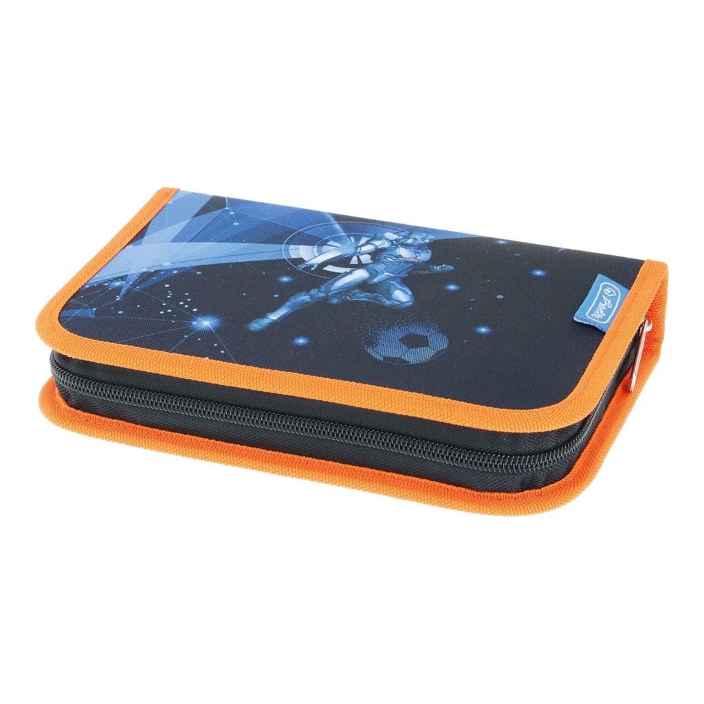chlopně, vesmírná hra, 20,3 x 14 x 3,5 cm, 31 dílů - 14 fixů, 8 šestihranných pastelek, 2 tužky, ořezávátko, guma, 16 cm pravítko, trojúhelník, kuličkové pero, rozvrh hodin, vizitka, materiál: polyester przeczytaj całość