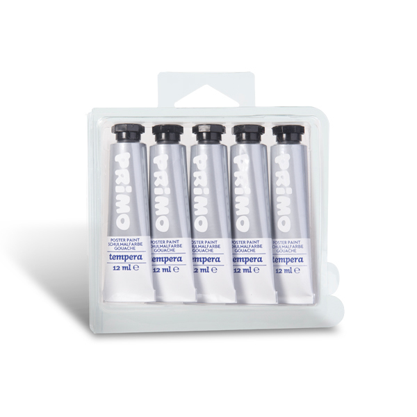Temperová barva PRIMO, 12ml, 5ks, stříbrná, tuba